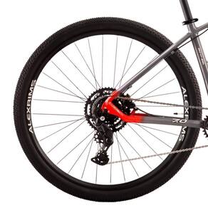 - Quadro: Alumínio 6061 tratado c/ tubo do selim; - Câmbio Traseiro: Shimano Cues RD-U4000 GS 9V; - Suspensão: MTB 29; - Freios: Shimano hidráulicos; - Rodas: Cubo Shimano com Aros Alexrims MD25; - Cores: Design impactante em grafite, vermelho e cinza; - Peso: Aprox.14,5kg; - Pneus: 29x2.10 para uso misto; - Pedivela: Shimano Cues, coroa única 32 dentes; - Pedal: Plataforma;