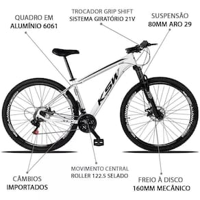 Bicicleta Aro 29 Quadro 15 Ksw Xlt Alumínio 21 Marchas Freio A Disco - BRANCO