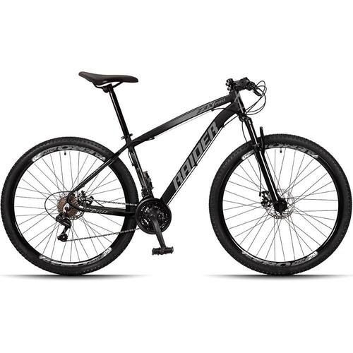 A bike possui um quadro altamente resistente e leve, fabricado em alumínio 6061, 24 combinações de marcha para você encarar qualquer subida, freios a disco que garantem sua segurança seja a ladeira que for e uma suspensão que proporciona conforto no seu percurso.