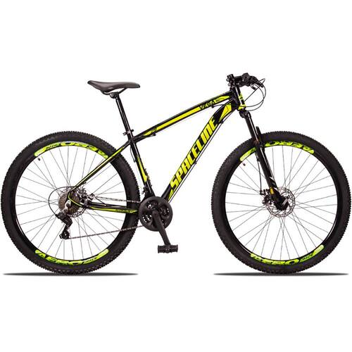 Bicicleta Aro 29 Spaceline Vega 24 Vel Câmbio Traseiro Shimano Freio a Disco Bike MTB Alumínio - 15-Preto+Amarelo