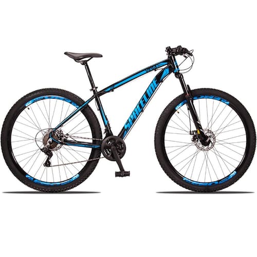 Bicicleta Aro 29 Spaceline Vega 24 Vel Câmbio Traseiro Shimano Freio a Disco Bike MTB Alumínio - 17-Preto+Azul