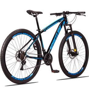 Bicicleta Aro 29 Spaceline Vega 24 Vel Câmbio Traseiro Shimano Freio a Disco Bike MTB Alumínio - 21-Preto+Azul