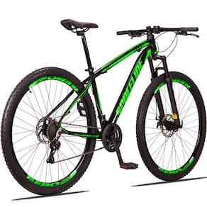 Com um quadro de Alumínio de ótima geometria para o MTB e um design exclusivo. Possui 24 combinações de marchas com trocadores rapidfire que facilitam as trocas entre catracas. Uma suspensão de amortecimento para absorção de impacto e freio a disco para melhor segurança do ciclista.