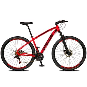 Bicicleta Aro 29 Spaceline Vega Alumínio 24v Freio a Disco Supensão MTB - 21-Vermelho+preto