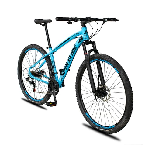 Bicicleta Aro 29 Spaceline Vega Alumínio 24v Freio a Disco Supensão MTB - 17-Azul+preto