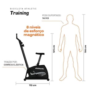 Invista em um estilo de vida ativo e saudável. A Bicicleta Athletic Training é ideal para treinos aeróbicos, condicionamento físico, resistência, HIIT e fortalecimento de glúteos, quadríceps, costas, lombares e abdominais.