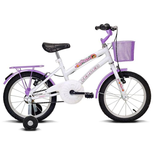 Bicicleta Verden - Breeze Aro 16, super feminina, é ideal para as primeiras pedaladas das garotas que prezam a sua beleza! Com rodas laterais para sua segurança! Para-lamas, cestinho e bagageiro compõem a delicadeza da bicicleta Breeze. Produto certificado por órgão acreditado pelo Inmetro.