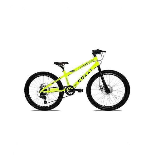 Bicicleta Colli Airon Aro 24 Com Freio A Disco 7v Amarelo COMPONENTES Abraçadeira de Canote: Abraçadeira com blocagem ( Canote do Selim: Canote do selim Freio: Kit freio a disco pinça/disco Freio (Cabo): Cabo de freio dianteiro 1.5x800mm Freio (Condute): Condute encapado câmbio Alavancas: Alavanca direita 7V sem manete Corrente: Corrente fina 1/2x3/32 Maçanetas: Maçaneta de nylon 26 Manoplas: Manopla diplomata Roda: Aro 24 aero 36F freio a disco traseiro c/ espaçador Movimento Central (1): Eixo centro ponta quadrada 5U com porca Movimento Central (2): Movimento central com colar Caixa de Direção: Movimento direção over ahead (34/34) Câmbio: Câmbio traseiro c/ gancheira Guidão (Espaçador): Espaçador de guidão de alumínio 10mm Guidão (Dimensões): Guidão x 620 mm 9 Câmara de Ar (Fita): Fita para aro 24 Câmara de Ar (Peça): Câmara de ar aro 24 Suspensão: Garfo 24 Airon/Londres freio a disco over - Pedivela: Pedivela 152mm single aço 36 dentes 24? Pedal: Pedal 9/16 preto Pneu: Pneu