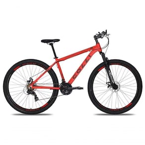 Especificações Aro: 29 Tipo de aro: Parede dupla Material do aro: Aço carbono Peso: 16,47 kg Peso máximo suportado: 120 kg Altura mínima recomendada: 1,72 m Altura máxima recomendada: 1,76 m Idade mínima recomendada: 14 anos Tipo de bicicleta: Passeio Tipos de suspensão: Dianteira Material dos pedais: Plástico Material do assento: Sintético