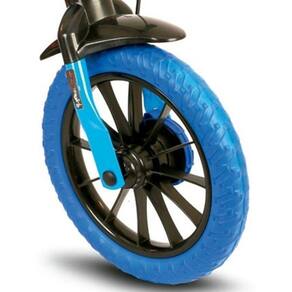O modelo Veloz possui limitador de giro do guidão, importante característica que evita que o guidão dê uma volta completa e danifique o freio, preservando a integridade física da criança.