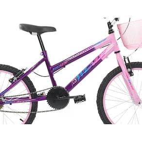 Bicicleta Com Rodinha e Cesta Feminina Infantil Aro 20 Wendy - Cor: Violeta+Rosa