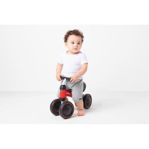 A Bicicleta de Equilibrio 4 Rodas da Buba estimula o equilibrio e a coordenacao motora do pequeno de forma divertida e segura. E estavel, com rodas duplas na frente e atras. A crianca aprende desde cedo a se equilibrar e adquire autoconfianca, facilitando a transicao para a bicicleta com pedais.