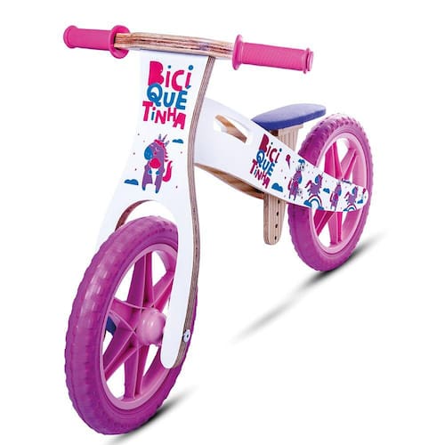 A melhor e mais bonita Bicicleta de Equilíbrio de Madeira 100% Brasil - Balance Bike - Bicicleta sem pedal.BiciQuétinha traz ao Brasil as bicicletas de equilíbrio, com um conceito de qualidade e produção 100% nacional. Tudo feito com muita atenção e cuidado.Bicicletas de Equilíbrio ou Balance Bikes são sucesso EUROPA:Os Primeiros Passos para Pedalar, é não Pedalar: Os Primeiros Passos para Pedalar, é não Pedalar,Na primeira infância, as crianças ainda não estão prontas para pedalar. BiciQuétinha Bicicleta de Equilíbrio sem pedal é mais segura pois permite que a criança apoie os pés no chão a qualquer momento, tendo o controle em tempo integral e desenvolvendo a autoconfiança. As manoplas de borracha ajudam as crianças, e os pneus de EVA maciço garantem conforto e aderência ao chão.Materiais utilizados: Compensado naval resistente à umidade e multi-laminado resistente à impactos , rodas aro 12 com pneu 100% EVA não fura e não esvazia , manoplas em borracha e assento estofado com regulagem de altura. Para crianças a partir de 01 ano e 08 meses, até 04 anos.Conceito da marca BiciQuétinha : Um Produto Leve Também na ConsciênciaBiciQuétinha Bicicleta de Equilíbrio foi construída pensando no desenvolvimento das crianças e no futuro, é um produto leve também na consciência. Sua matéria-prima, um compensando naval multi-laminado é 100% brasileira e originária de madeira de reflorestamento. Um detalhe que traz leveza, resistência e praticidade, permitindo que ela possa ser facilmente carregada para qualquer lugar.Bicicleta de equilíbrio sem pedais de madeira 100% nacional e 100% de madeira reflorestada, com valorização de produtores locais.Propositar pais e filhos brincarem juntos ao ar livre, sentir o vento, aprender brincando. Isso que sonhamos com a BiciQuétinha: oportunizar para mais crianças do Brasil terem acesso aos conceitos das bicicletas de equilíbrios já consolidadas na Europa, para que elas também aprendam a se equilibrar, desenvolvam a autoconfiança e coordenação motora, com rápido aprendizado e diversão.DIFERENCIAIS:Compensado naval multi-laminado Resistente à impacto e à umidade ,Banco em espuma e altura regulável,Pneus aro 12 em borracha de EVA maciça Não fura e não esvazia ,Manoplas emborrachadas com proteção lateral,100 % Feito no Brasil fácil manutenção e garantia ,100% Madeira Reflorestada,Pintura em serigrafia com camada protetora.Características:Peso: 2,8 KG Super Leve - Criança consegue carregar. Dimensões: L x P x H : 70 x 50 x 17 cm CAIXA L x H x C 82 x 50 x 36 cm PRODUTO Modelo: UnicórniosMarca: BiciQuétinhaGarantia: 01 anoIdade ideal: 1 ano e 08 meses a 04 anosCertificação INMETROCE-BRI/BRICS 00648-17NM300/2002 - OCP 0098