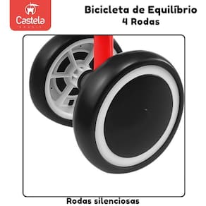 A bicicleta de 4 rodas, estimula o equilíbrio e a coordenação motora do pequeno na fase de desenvolvimento, de forma divertida e segura. A criança aprende desde cedo a se equilibrar e adquirir autoconfiança, facilitando a transição para a bicicleta com pedais. Mantendo os pés em contato com o chão, a criança sempre terá o controle da velocidade e movimento. É estável, pois possui rodas duplas na frente e atrás, com design diferenciado. Suporta até 20kg. Fácil de montar vem as instruções na caixa. Indicado para crianças acima de 12 meses.