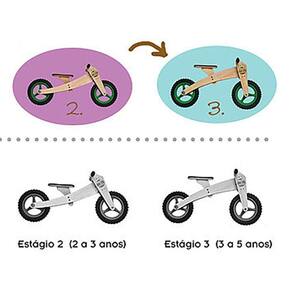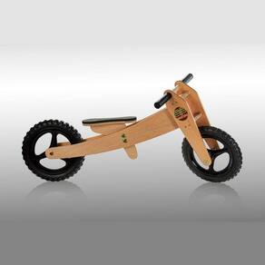 Possui 2 alturas de banco. A Woodbike é uma bicicleta pedagógica, fácil de montar, feita com madeira de reflorestamento, que estimula o equilíbrio e a coordenação motora de crianças de 1 a 5 anos. É um produto sustentável, que evolui com seu filho, possui giro limitado do guidão e é oferecida pela Camará Movelaria em 4 diferentes cores: azul, verde, vermelha e rosa, a versão 2-em-1 é indicada para crianças de 3 a 5 anos.