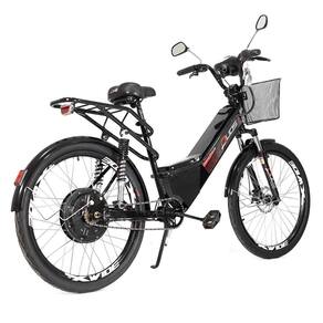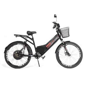 Bicicleta Elétrica - Confort Full - 800w Lithium - Preta - Duos Bikes: a Bicicleta Duos Confort Full Elétrica tem potente motor de 800w, capaz de atender diversas necessidades como: trabalho, transporte ou até mesmo diversão com a família. A Bicicleta Elétrica Confort Full Duos Bikes proporciona segurança, economia, conforto e muita praticidade. Produzida com matéria prima de alta qualidade, que garante resistência e muita durabilidade, mesmo em condições extremas! Você pode recarregar sua bicicleta elétrica em qualquer tomada. Detalhes desse modelo: • Com manete de freio • Botão de velocidade e botão de buzina • Compartimento de bateria e de modulo seguros • Selim • Bagageiro • Sinaleira a pilha • Paralamas dianteiro e traseiro • Refletor • Motor de 800w • Amortecedor dianteiro e traseiro • Sensor de pedal assistido • Tripé lateral • Freio a disco • Espelhinhos retrovisores • Cesta Informações: • Produto: Bicicleta Duos Confort Full 48v 13ah • Marca: Duos Bikes • Coleção: Duos Confort Full • Tipo: Bicicleta Elétrica • Categoria: E-bikes e MUV • Dimensões aprox. (C x A x L): 188 cm x 115 cm x 60 cm • Painel de Exibição: com indicador de nível de energia, velocímetro, painel de tensão de bateria e parada (P) • Segurança: Alarme sonoro com trava da roda traseira (Sistema antifurto inteligente) • Rodas / Pneus: Aro 26 - Alumínio Duplo • Altura Indicada (Min-Max): 1.50m a 2.10m • Autonomia Média: 35 a 50km por carga (A autonomia depende do peso do condutor, tipo de bateria, inclinação do terreno, auxílio dos pedais, velocidade média, calibragem dos pneus, etc.) • 03 níveis de velocidade: Eco / Normal / Power • Velocidade máxima: limitada a 32km/h (De acordo com a Resolução 996 art. 2° II Contran) • Peso máximo suportado: capacidade de carga é até 120Kg (para as especificações foi considerado a carga de 90Kg, caso o condutor/passageiro somados ultrapasse esse peso só alterará na autonomia descrita) • Farol: com LED • Pedais: Pedal assistido (pedal system) • Conteúdo: - 01 Bicicleta Elétrica - 02 Chaves de ignição - 02 Controles do alarme - 01 Carregador de bateria inteligente bivolt 110/220 - 01 Bateria 48v 13ah (já instalada) • Tempo de carregamento: entre 06 a 08 horas (nunca deixe carregando mais que 08 horas) • Recomendação: acima de 18 anos de idade Especificações: • Referência: FULLLTPT • Código de Barras: 7906234243523 • Embalagem (C x A x L): 180 x 88 x 32 cm • Embalagem (Peso): 50 kg • Motor: 800w de potência • Bateria: lítio 48V/13ah • Freio: a disco • Material / Composição: - Manete em Alumínio - Aro 26: Alumínio - Guidão: Aço Reforçado - Pedal: Plataforma em alumínio tipo sueco - Quadro: Aço Rígido Observações: • A bicicleta é enviada pré-montada: a bicicleta segue revisada, mas por motivo de acomodação na embalagem para transporte ela não vai completamente montada. • A instalação e revisão final é de responsabilidade do cliente. Sugerindo que seja efetuada por uma oficina especializada • O tempo de carregamento é entre 06 a 08 horas (nunca deixe carregando mais do que 08 horas) • As baterias devem ser carregadas a cada 15 dias mesmo que não sejam utilizadas Aviso: • As imagens são meramente ilustrativas • Os pesos, tamanhos, pesos e medidas são aproximados • As cores e estampas dos produtos podem ter variações • As informações são de responsabilidade do fabricante ou fornecedor
