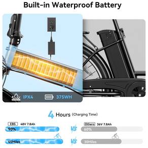 Bateria: Íons de lítio embutida removível, 48V, 375Wh