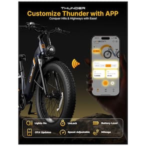 Os pneus 26x4 aumentam a área de contato com o solo, proporcionando tração em superfícies irregulares como cascalho, areia e neve. A suspensão dianteira ajuda a absorver impactos em pisos com desníveis, e os freios a disco contribuem para frenagens mais consistentes em diferentes condições climáticas e de velocidade.