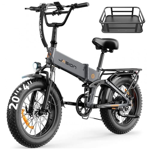 A bicicleta elétrica dobrável Jasion X Hunter cinza ardósia é indicada para uso adulto em deslocamentos urbanos e trajetos em terrenos variados, combinando quadro em alumínio com pneus largos 20" x 4,0" para maior estabilidade e tração em diferentes superfícies. O motor traseiro brushless de 750W, com potência de pico de 1400W, permite atingir velocidades em torno de 48 km/h, oferecendo resposta rápida em acelerações e apoio em subidas dentro das condições de uso recomendadas.