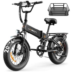 A bicicleta elétrica dobrável Jasion X Hunter preto sombra é indicada para uso adulto em deslocamentos urbanos e trajetos em terrenos variados, combinando quadro em alumínio com pneus largos 20" x 4,0" para maior estabilidade e tração em diferentes superfícies. O motor traseiro brushless de 750W, com potência de pico de 1400W, permite atingir velocidades em torno de 48 km/h, oferecendo boa resposta em acelerações e apoio em subidas dentro das condições de uso recomendadas.