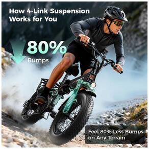 Suspensão: Dupla (dianteira com cerca de 80 mm de curso e traseira de quatro barras)