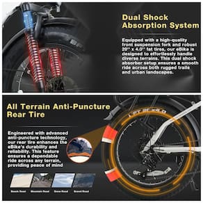 ?Design Durável e Ergonômico?A Bicicleta Elétrica Narrak possui um quadro Step-Thru/Over robusto e dobrável e um garfo dianteiro com amortecimento de impacto para um passeio suave em qualquer terreno. Seu bagageiro removível e selim de alumínio de alta qualidade suportam até 127 kg, garantindo uma experiência de primeira qualidade em cada passeio.