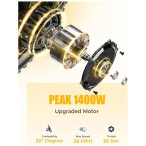 Desempenho aprimorado - A bicicleta elétrica Ranger 2.0 oferece desempenho potente. Ela possui um motor de pico de 1400 W aprimorado para maior potência de saída e oferece uma capacidade de subida superior com torque máximo de 85 Nm. Você desfrutará de uma aceleração mais rápida de até 45 km/h.