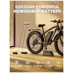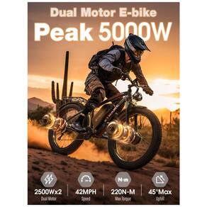 A Bicicleta Elétrica Dual Motor Peak 5000W da EYBAIKC oferece um desempenho excepcional. Com modo de motor único e duplo, atingindo velocidades de até 40-45MPH, e potência para subir inclinações de até 45 graus com facilidade. Equipada com uma bateria de lítio de 52V 32Ah que proporciona uma incrível autonomia de 160km por carga, variando de acordo com o terreno e modo de pedalada. Os freios a disco hidráulicos precisos garantem segurança, enquanto os pneus largos 24' x 4.0 proporcionam aderência em diferentes terrenos. Ideal para aventuras na montanha ou na cidade. Marca: Não Informado