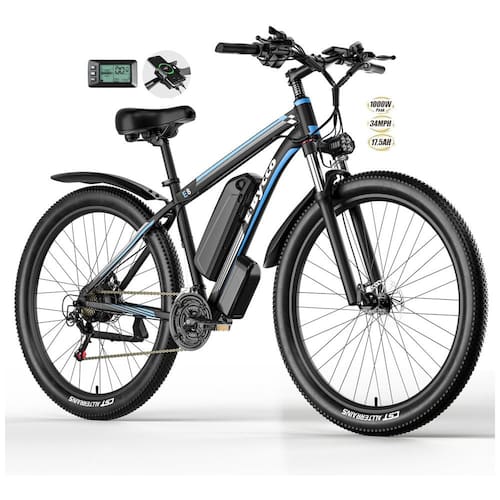A bicicleta elétrica EBycco E8 possui um motor de pico de 1000W85Nm, permitindo atingir facilmente uma velocidade máxima de 34 MPH. Com uma bateria removível de 48V17.5AH, alcança até 70 milhas no modo de pedal assistido. Possui pneus aro 29, suspensão dianteira travável, 21 velocidades, freios a disco, capacidade de carga de 330 LBS. Com 5 modos de condução e display LCD inteligente, a E8 é uma escolha ideal para explorar diversos terrenos e se deslocar diariamente com conforto.