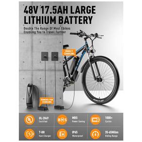 Característica Especial: Longa distância até 70 milhas, Pneus e Câmara de ar novos; 21 Velocidades; Display Digital, Velocidade Máxima de 34MPH, Acelerador de Polegar, Bateria de Lítio BMS 840WH, 5 Modos de Condução, Assento Ajustável, Freio a Disco Duplo, Suspensão Dianteira, Roda Dianteira de Liberação Rápida, Bateria Recarregável Travável, Suspensão Bloqueável Veja mais,