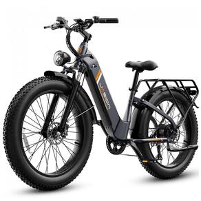 Os pneus 26x4 aumentam a área de contato com o solo, proporcionando tração em superfícies irregulares como cascalho, neve e areia, além de maior estabilidade em piso urbano. A suspensão dianteira auxilia na absorção de impactos em pisos com desníveis, e os freios a disco hidráulicos dianteiro e traseiro contribuem para frenagens mais progressivas e controladas em diferentes condições climáticas e de velocidade.