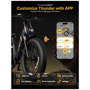 A estrutura suporta capacidade máxima de carga de até 181 kg, atendendo usuários adultos que desejam transportar bagagem dentro do limite especificado. O modelo Thunder Standard inclui bagageiro, farol, carregador e kit de ferramentas, compondo um conjunto preparado para deslocamentos diários, passeios recreativos e uso em múltiplos tipos de terreno.