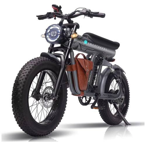 A bicicleta elétrica SMARTRAVEL Powertrain1200W é ideal para enfrentar terrenos variados, incluindo estradas, montanhas e campos, com facilidade e sem esforço. Com velocidades impressionantes de até 50 km/h, proporciona uma experiência emocionante de passeio. O motor sem escovas robusto fornece um torque de 80 N e recursos de alto desempenho, garantindo uma saída confiável e eficiente com manutenção mínima necessária.