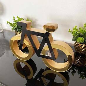 Bicicleta em madeira decoryou ref 320 preto e ouro espelhado Quantidade: 1 peça Material: madeira e acrílico. Tamanho: 25 x 17 x 3,2cm