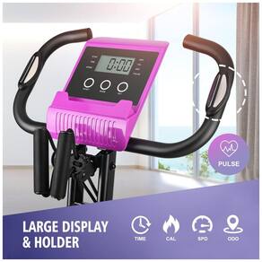 Design X Bike dobrável O design compacto exclusivo do tipo doméstico desta bicicleta ergométrica de ciclismo fitness dobrável pode ser facilmente dobrado para metade do tamanho montado, o que não ocupa espaço interno. Com tubos de aço espessos e acessórios duráveis, a estrutura triangular estável pode suportar treinadores com peso de até 200 kg, o design em forma de X é baseado na teoria do equilíbrio físico, que faz você sentir a bicicleta robusta e não se preocupe em cair. Modos 3 EM 1 Bicicleta ErgométricaA bicicleta vertical magnética TEHCMOO pode ser alterada para bicicleta dobrável 3 em 1 vertical, semi reclinada e reclinada. A bicicleta ergométrica vertical ajuda a aumentar sua frequência cardíaca e melhorar seu condicionamento cardiovascular. Enquanto a bicicleta ergométrica interna reclinada é mais confortável e natural, a posição do corpo reclinada ajuda a reduzir a fadiga do corpo e a eliminar a dor muscular na parte superior do corpo. As bicicletas semi reclinadas são adequadas para pessoas com lesões no joelho ou idosos. Resistência magnética ajustável de 8 níveis A bicicleta de ciclismo compacta portátil interna oferece opções de peso mais ajustáveis, usamos volantes magnéticos silenciosos e suaves. Projetado com resistência magnética ergonômica e volante resistente de 1.3 kg, garante um movimento de passeio suave e silencioso e nenhum ruído anormal ao se exercitar em casa. Construído com sistema de controle de tensão magnético, o ajuste de resistência de 8 níveis pode atender às suas diversas necessidades. Monitor LCD de rastreamento digitalO monitor digital na frente da bicicleta ergométrica indoor TECHMOO exibe a distância, calorias queimadas, tempo, velocidade e frequência cardíaca, o que o ajudará a se concentrar mais no exercício. Acompanhe sua frequência cardíaca com os sensores de frequência de pulso, embutidos no guidão. Fácil de operar, pressionando o botão para verificar todos esses dados. Equipado com a conveniência do suporte do telefone para você assistir a vídeos de treino ou programas favoritos durante o exercício Marca: Não Informado