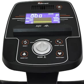- Funções do Painel: Velocidade, Distância, Tempo, Calorias, Pulso, RPM, Watt, Recuperação, Gordura corporal