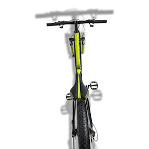 Quadro de Alumínio com Suspensão Dianteira: O quadro de tamanho 19" em alumínio com cabeamento interno combina leveza e durabilidade, enquanto o garfo com 100mm de suspensão absorve os impactos, proporcionando mais conforto.
