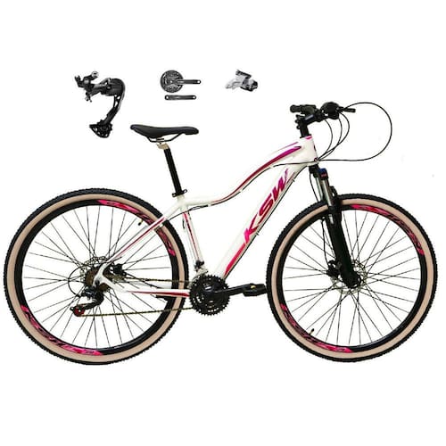 Bicicleta Feminina 29 Ksw Mwza Câmbio Traseiro Shimano Alívio e Altus 27v Freio Hidráulico Garfo Com Trava Pneu com Faixa Bege - Branco/Pink/Violeta - TAMANHO 15