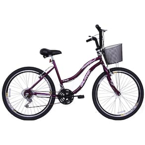 Bicicleta Feminina para passeio com Quadro tamanho 18 e Aro 26, Modelo Beach, marca Dalannio Bike, cor Violeta.