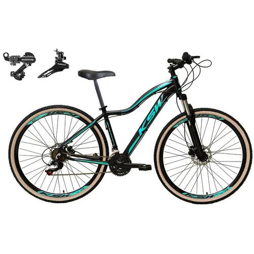 Bicicleta Feminina Aro 29 Ksw Mwza Alumínio 24v Câmbios Shimano Freio a Disco Garfo Suspensão - Preto/Azul - TAM - 17