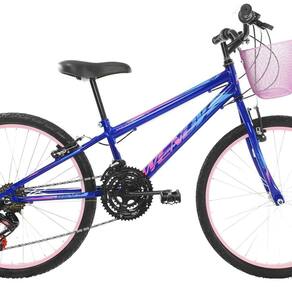 Bicicleta Feminina Infantil Aro 24 Wendy Aço 18 Marchas Freios Vbrake DESCRIÇÃO: Incentive seu filho para o mundo do ciclismo ... pedalar, além de ser uma brincadeira super divertida, vai ajudar a criança a adquirir firmeza nos movimentos das pernas, senso de direção, além de ajudar a vencer medos e proporcionar uma sensação agradável de liberdade e de aventura! Wendy Bikes, companheira ideal para você que curte pedalar e se aventurar em seus passeios, a Bike lhe proporciona toda a qualidade e segurança da marca, além de possuir um design ergonômico para o seu conforto. Conta com pintura em cores alegres e vibrantes e adesivos estilosos em alto brilho. CARACTERÍSTICAS: Modelo: Rebaixada; Quadro e Garfo fabricados em aço carbono; Aros fabricados em alumínio; Adesivos em alto brilho; 18 Marchas; Câmbio dianteiro: Verificar Disponibilidade; Câmbio traseiro: Verificar Disponibilidade; Tipo de trocador de marchas: Luvinha; Freios V-Brake; Raios: Aço 2.0x185mm; Manopla em borracha; Garfo: Standard rígido; Movimento central: 4,5 cm; Caixa de direção: Standard; Canote do selim: Aço carbono; Pedivela: Monobloco, 165mm; Pneus: 24x1,75; Coroa dianteira: Tripla 28x38x48 dentes, aço carbono, IMPORTARDO; Peso suportado: Até 85 kg; Medidas Aproximadas: Altura do chão ao guidão: 95 cm; Largura do guidão: 60 cm; Comprimento total: 160 cm; Comprimento entre rodas: 40 cm; Altura do chão ao banco (altura mínima): 60 cm.