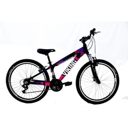 Bicicleta Freeride Aro 26 Freio 21 Vel. Viking X Tuff25 Bicicleta Freeride Aro 26 Freio V-Brake 21 Velocidades Câmbios Shimano Preto/Rosa Viking X Tuff25 Foi projetada para quem quer uma bike de personalidade e estilo inigualável. Ela oferece ao ciclista quadro diferenciado e design arrojado e exclusivo. Com qualidade, ela vem equipada de com 21 velocidades, permitindo ao ciclista a escolha da marcha ideal de acordo com o local. O design moderno pode ser observado no quadro da bike e os pneus são confeccionados em MTB com aro 26, garantindo segurança total a cada manobra em qualquer tipo de terreno. Observações: - Imagens Meramente Ilustrativas. - Todas as Informações divulgadas são de responsabilidade do Fabricante/Fornecedor. - Bicicleta vem regulada, ficando por conta do comprador apenas ajuste de canote/selim/guidão/inserção da roda dianteira. Informações Técnicas: - Modelo: MTB Freeride - Coleção/Sortimento: 2017 - Idade recomendada: Juvenil/Adulto - Gênero: Unissex - Aro: 26 - Quadro: Alumínio - Marcha: 21 Marchas - Garfo: Suspensão - Guidão: Aço carbono MTB - Freios: V-Brake - Rodas: Aero - Câmbio: Shimano - Manoplas: MTB - Corrente: Index - Selim: WG - Trocador de Marcha: Grip -Shift - Pedivela: Importado - Pneus: MTB 26" - Pedal: Plástico MTB - Altura: 109 cm - Largura: 68 cm - Peso: 15,90 kg ; ; ; Conteúdo da Embalagem: - 1 Bicicleta - Manual de Instruções Garantia: 3 meses Marca: Viking ;