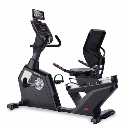 A Bicicleta Ergométrica Horizontal Speedo R75 chegou com todos os recursos necessários para oferecer mais tecnologia, conforto, durabilidade e segurança para seus usuários. A nova versão conta com um amplo painel LED para controle das principais métricas, além de suporte para celular e entrada USB. Nele é possível também escolher entre os 12 treinos pré-definidos ou mudar o nível de esforço desejado, tudo isso para oferecer mais tecnologia e conforto para usuário. Outro destaque está no design que priorizou a ergonomia em todos os ângulos: desde o encosto para a região lombar, altura dos pedais, apoios para as mãos e alavanca para ajuste do banco. A bicicleta horizontal R75 possui estrutura robusta com pintura e carenagem com alta durabilidade e segurança, projetados especialmente para ambientes com alto fluxo de usuários como espaços fitness de condomínios, academias e estúdios de ginástica. Possui, ainda, gerador próprio que dispensa fontes de energia, sendo assim, um equipamento econômico e com baixa necessidade de manutenção.Tecnologia:Painel LED para ajuste de nível de esforço e controle das principais métricas como tempo, distância, calorias, velocidade, nível de esforço, watts e batimentos cardíacos (Hand Grip). Conforto:A nova versão possui design mais moderno com espaço amplo para entrada no equipamento além de ângulos no banco, pedal e guidão que proporcionam uma ergonomia mais adequada. Durabilidade e Segurança:Com uma estrutura robusta, pintura e carenagem altamente resistentes, a bicicleta horizontal Speedo R75 oferece a durabilidade e segurança que você busca para seu espaço fitness. Para quem é a Bicicleta Horizontal Ergométrica Speedo R75 Profissional?A R75 é indicada para todos os níveis de prática e idade. Muito recomendada para os idosos e usuários com sobrepeso por possuir fácil acesso e possibilitar um exercício de baixo impacto, com apoio para as costas. Seu ajuste de resistência possibilita que você escolha a intensidade do seu treino. Além disso, por ser robusta e resistente, ela suporta grandes fluxos de utilização e pode ser usada como contraponto para atletas de alto impacto e grande resistência. Ficha técnica: