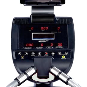 Painel LED para ajuste de nível de esforço e controle das principais métricas como tempo, distância, calorias, velocidade, nível de esforço, watts e batimentos cardíacos (Hand Grip).