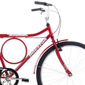 Bicicleta Houston Aro 26 Super Forte Vermelho Bicicleta Houston Aro 26 Super Forte. Perfeita para quem valoriza mobilidade urbana e praticidade no dia a dia. Ideal para passeios leves e deslocamentos pela cidade, conta com paralamas e bagageiro que trazem ainda mais funcionalidade. Une conforto, estilo e a robustez necessaria para acompanhar sua rotina com durabilidade e sem complicacao. Caracteristicas: Marca: Houston Modelo: Aro 26 Quadro e guidao: Aco carbono VB Roda: Aro 26 em aluminio, Raio 2.0x276mm Cesta: Aramada preta Paralamas: Aco carbono Selim: Largo com 2 molas Descanso lateral: 26 em aco cromado Cubo dianteiro: 36 furos Freio: Sistema V-Break nylon preto 108mm Movimento central: 45mm Roda livre: 20 dentes Acessorios: Campainha, espelho, folheto, manuais e refletores