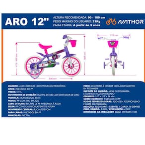 Sobre a marca: qualidade Nathor! Com mais de 38 anos no mercado a Nothor possui uma estrutura com mais de 24 mil m e uma capacidade de produção de 7 mil bicicletas diariamente, sendo a maior indústria de bicicleta infantis da América Latina. Inovação em tecnologia como máquinas de cortes a laser, soldas robotizadas, dobras CNC para garantir produtos com qualidade e segurança para as crianças.