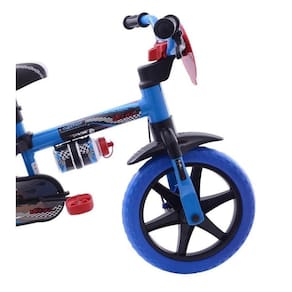 Possui também freio a tambor, garrafinha, pneus em eva, quadro, garfo e guidão em aço carbono, mesa de direção com regulagem de ângulo, placa frontal e cores alegres. Tudo o que a criança precisa para se divertir com segurança e conforto.