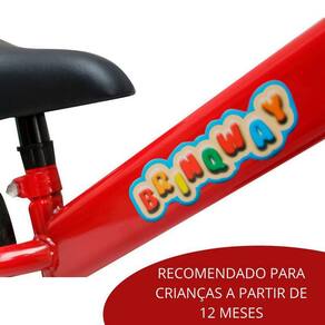 Bicicleta Infantil Aro 12 Sem Pedal Vermelha - Importway A Bicicleta Infantil Aro 12 da Importway veio para garantir a diversão da criançada, além de ajudar na construção da autoestima e da confiança dos pequenos. Ideal para desenvolver o equilíbrio, coordenação bilateral e a percepção de espaço. Características Bicicleta Aro 12; Idade Minima Recomendada: 3 Anos; Idade Máxima Recomendada: 7 Anos; Dimensões Aproximadas: A 55 x L 13 x C 80 cm; Material do Quadro: Aço; Pneus em EVA; Age na Construção da Autoestima e da Confiança da Criança; Estimula o Equilíbrio, Coordenação Bilateral e Percepção de Espaço; Produto Certificado Pelo Inmetro; de 90 Dias Pelo Fornecedor; Imagens Meramente Ilustrativas Marca: Não Informado Ean: 7908449904343
