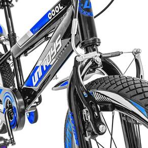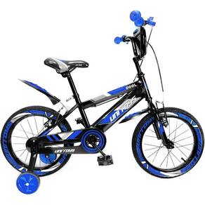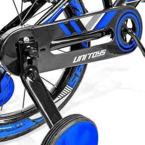 Segurança em primeiro lugar: equipada com freio V-Brake de fácil acionamento e protetor de corrente para evitar acidentes.Equilíbrio garantido: rodinhas laterais de apoio ajudam na adaptação das crianças iniciantes.Estrutura resistente: quadro em aço carbono suporta até 30 kg com estabilidade e durabilidade.Conforto ajustável: guidão e selim reguláveis para acompanhar o crescimento da criança.Pneus reforçados: excelente aderência em diferentes terrenos, ideal para parques, calçadas ou quintais.Proteção contra sujeira: paralamas dianteiro e traseiro inclusos.Características:Aro: 16Idade recomendada: de 3 a 8 anosPeso máximo suportado: até 30 kgNormatização: NM 301/2002Dimensões aprox.:Altura da bicicleta: 88 cmComprimento da bicicleta: 110 cmAltura mínima do selim: 2 cmAltura máxima do selim: 20 cmComprimento do guidão: 56 cmPeso aprox.: 10 kgItens inclusos: pedais, parafusos, rodinhas laterais, placa frontal, paralama dianteiro e traseiroEnvio: pré-montada (poucas peças para montagem final)Cor: Azul