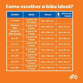 Com sofisticação e agilidade, a bicicleta é indicada para crianças a partir de 5 anos ou com altura entre 1,10m e 1,20m.